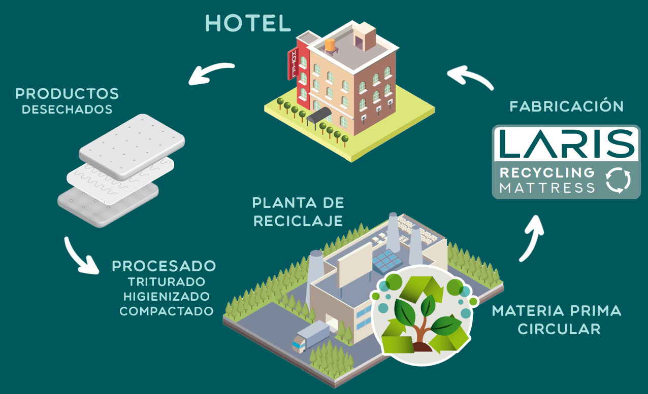 LARIS RECYCLING MATTRESS ha conseguido valorizar la espuma PUR procedente de los colchones en desuso y de las mermas post industriales.